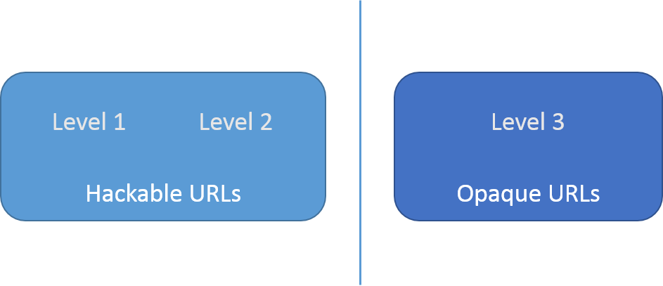 If client developers abuse transparent URLs (that are provided in a level 3 api) isn't the fact that the client stops working when the URLs change their problem? And sure, they can guess other URLs, just like in the browser we can guess other pages. Doesn't mean the application stage should let them access those pages etc.