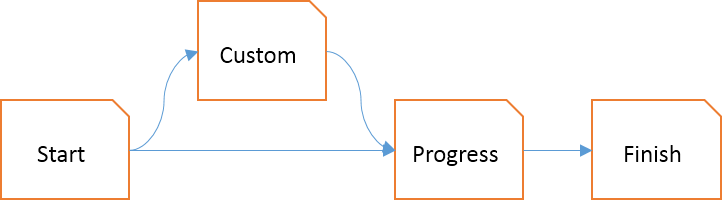 If you select Default and press Next, the Wizard will immediately proceed to the Progress step. If you select Custom, the Wizard will first show you the Custom step, where you can tweak your experience. Subsequently, when you press Next, the Progess step is shown.