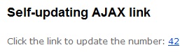 <h2>Self-updating AJAX link</h2> Click the link to update the number: <span id="thespan"> <% this.Html.RenderPartial("NumberAjaxUserControl"); %> </span>